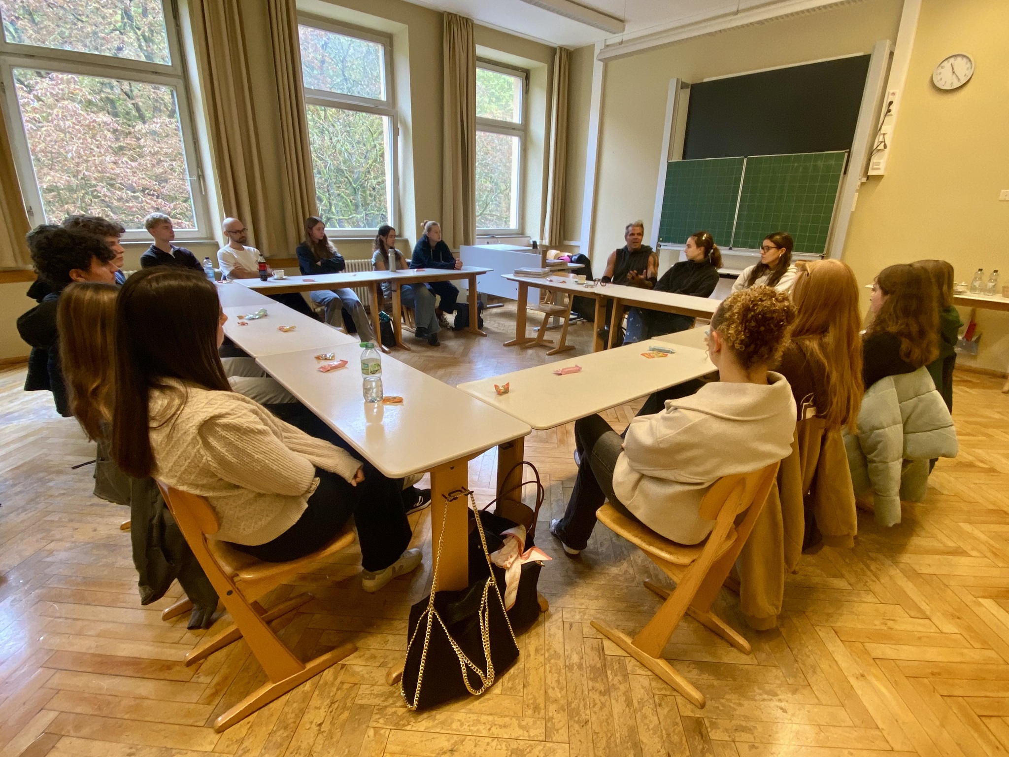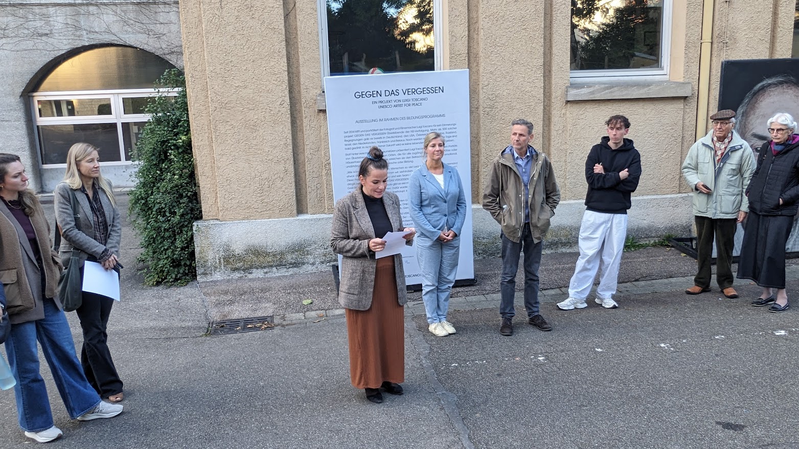 Am Donnerstag, den 09.10.2025, besuchte der Mannheimer Fotograf und UNESCO Artist for Peace Luigi Toscano das MöGy und traf sich mit dem KS2-Geschichtskurs von Herrn Eckert. Anlass war die Ausstellung „Gegen das Vergessen“, ein Holocaust-Gedenkprojekt von Luigi Toscano, das derzeit auf dem Schulhof des MöGys besichtigt werden kann.