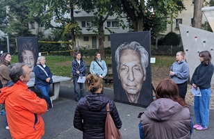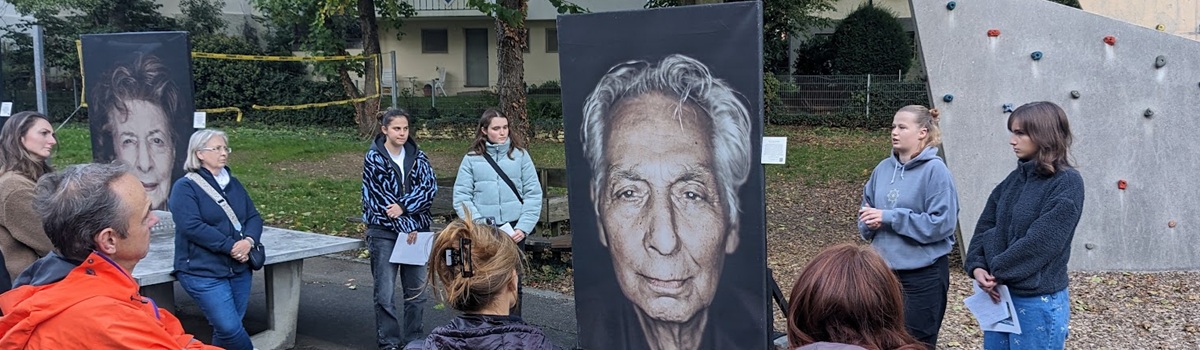 Für dieses Projekt hat Luigi Toscano weltweit ca. 500 Überlebende der NS-Verbrechen aufgesucht, kennengelernt und porträtiert. Die Porträts von 19 der Überlebenden befinden sich aktuell auf dem Schulhof des MöGys, großformatig auf 1x2 m großen Leinwänden. Allein ihre stille Präsenz im Schulhof fordert dazu auf, sich dem Thema und den individuellen Geschichten der Überlebenden zuzuwenden.