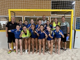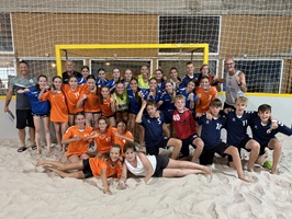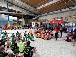 Bei den Beachhandballern lief es dafür umso besser und alle drei Mannschaften konnten sich den Titel „Landessieger“ sichern. Unsere drei Mannschaften durften in einer tollen Indoorbeachanlage zum Landesfinale im Beachhandball antreten – die Stimmung war von Anfang an fantastisch und es war alles super organisiert. In den Wettkampfklassen WK III (Mädchen) sowie WK IV (mit Mädchen- und Jungenmannschaften) lieferten unsere Schülerinnen und Schüler beeindruckende Leistungen ab. Viele Pirouetten, spektakuläre Kempas und schnelle Wechsel sorgten nicht nur für zahlreiche Tore, sondern zeigten eindrucksvoll, wie attraktiv und dynamisch Beachhandball sein kann. Besonders erfreulich: Alle Teams entwickelten sich im Laufe des Turniers auch technisch und taktisch weiter – das war nicht nur erfolgreich, sondern machte auch den betreuenden Lehrkräften richtig Spaß. Selbst, wenn es in einzelnen Spielen einmal eng wurde, behielten die Teams stets einen kühlen Kopf und funktionierten hervorragend als Einheit. Die Jungenmannschaft war mit nur sieben Spielern angereist – obwohl zehn eingesetzt werden dürfen. Umso bemerkenswerter war ihr Kampfgeist der letztlich zum verdienten Titel führte. Beide Mädchenmannschaften waren mit mehr als zehn Spielerinnen vertreten und mussten sich daher regelmäßig absprechen, wer pausiert. Diese Aufgabe meisterten sie selbstständig mit Fairness und Teamgeist. Leider führt im Beachhandball der Weg nicht weiter bis nach Berlin – mit dem Titel „Landessieger“, haben unsere Mannschaften jedoch das maximal Mögliche erreicht und wer weiß, ob wir in den nächsten Jahren doch auch mal die Chance bekommen mit Beachhandball zu den deutschen Meisterschaften nach Berlin zu fahren. Wir sind auf jeden Fall bereit.