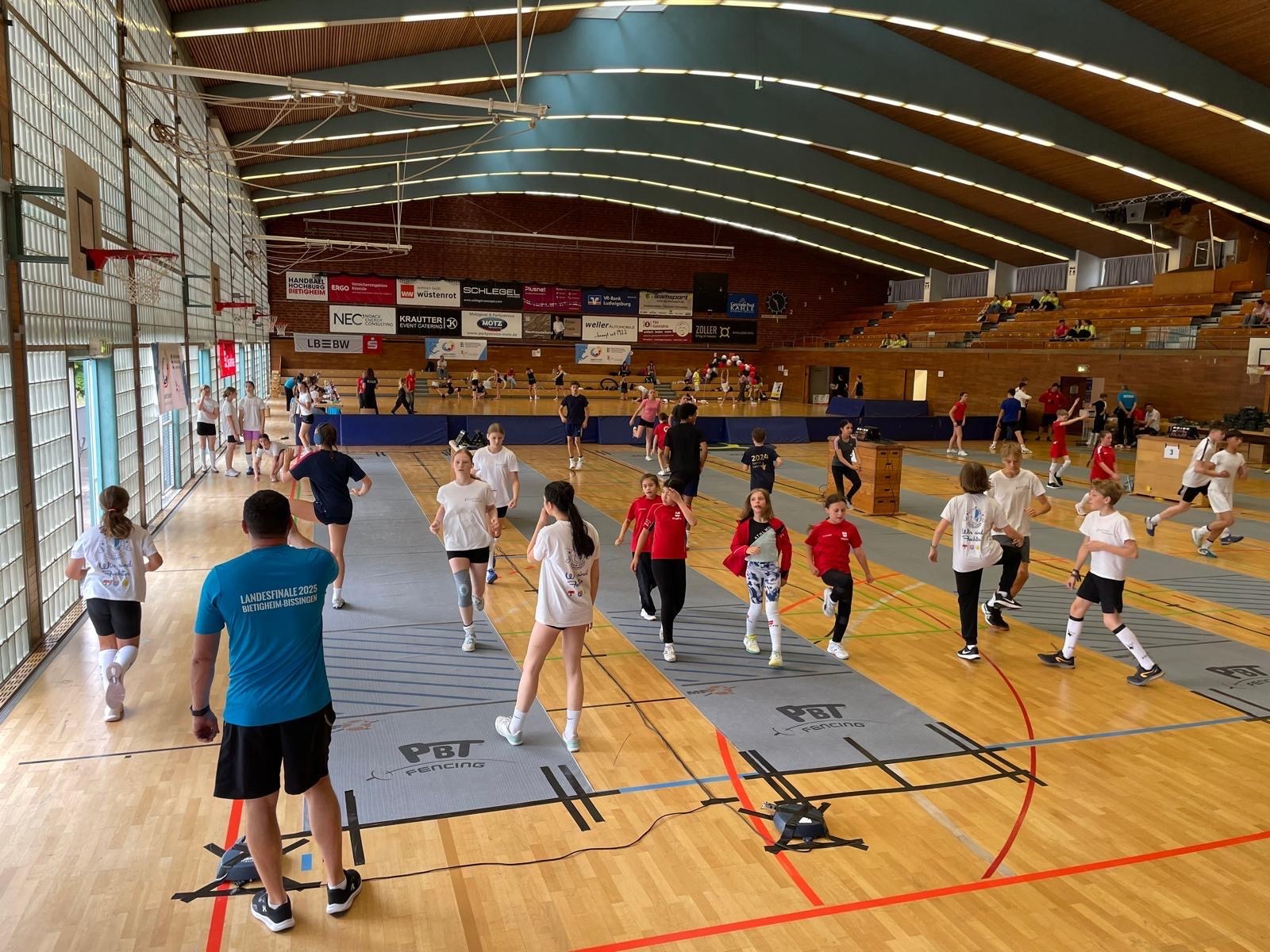 Am 16. Juli fand das große Landesfinale der Sommersportarten von „Jugend trainiert für Olympia“ in Bietigheim-Bissingen statt. Das MöGy konnte sich mit insgesamt sieben Mannschaften, davon vier in der Leichtathletik (U18 Mädchen, U16 Mixed Team, U14 Jungen und U14 Mädchen) und drei im Beachhandball, sowie zwei Einzelathletinnen im Fechten dafür qualifizieren. Hochmotiviert starteten also alle in ihre Wettkämpfe.