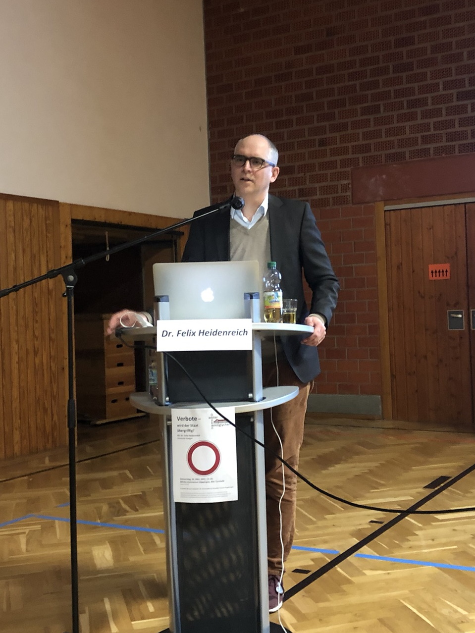 Corona-Regeln, Rauchverbot, Ernährungsampel und moralisierende Hinweisschilder auf Autobahnen – dies sind nur einige Beispiele an Einschränkungen und Botschaften, die der Staat in der jüngeren Vergangenheit erlassen hat. Der Sozialwissenschaftler Dr. Felix Heidenreich erörterte im jüngsten „weiterDenken ermöglychen“-Vortrag am Mörike-Gymnasium, ob der Staat übergriffig wird.
