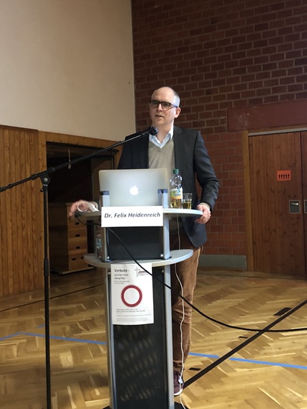Heidenreich zerpflückte die gestellte Themenfrage in Einzelfragen und erläuterte den westlichen Demokratie-, Rechts- und Freiheitsbegriff. Und er untersuchte den Unterschied von sozialer Steuerung des Verhaltens. In der vormodernen Gesellschaft habe es den Code der Ehre und den alten römischen Familienbegriff gegeben. Hier wurde mit Leidenschaft, am Beispiel der Fehde sehe man das, regiert und Mut, Ehre und Loyalität seien die zentralen Begriffe.