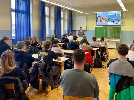 In den vergangenen Wochen beschäftigte sich der Deutsch-Basiskurs von Herrn Wellm mit den Kommunikationsstrategien in sozialen Medien. Dabei analysierten die Schülerinnen und Schüler unterschiedliche Videos auf der Plattform „TikTok“, in denen über politische Themen berichtet wird. In diesem Rahmen nahmen sie auch am Landeswettbewerb „Politik in 60 Sekunden“ teil.