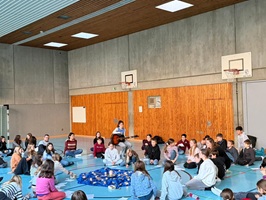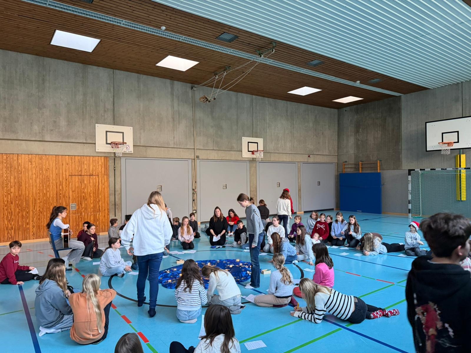 In der Adventszeit haben Frau Hommel und Frau Schultheiß gemeinsam mit ihren Religionsklassen jede Woche einen kurzen Adventsimpuls gestaltet, der an wechselnden Wochentagen stattfand. Im Zentrum stand jeweils eine weihnachtliche Geschichte, die zum Innehalten und Nachdenken einlud. Musikalisch wurden die Adventsimpulse von Luisa (7d) und Hanna (10a) sowie Herrn Kalthoff stimmungsvoll begleitet und sorgten für eine besonders besinnliche Atmosphäre. Das Angebot richtete sich an Schülerinnen und Schüler der Unter-, Mittel- und Oberstufe und wurde von vielen gerne angenommen. So entstand Woche für Woche ein Moment der Ruhe, Gemeinschaft und Vorfreude auf Weihnachten.