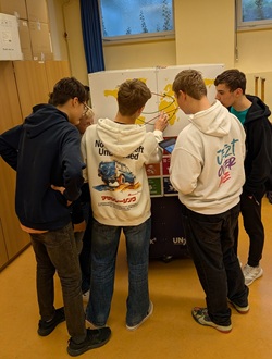 Die Vereinten Nationen sind der zentrale Ort für internationale Diplomatie und Konfliktlösung – trotz vieler ungelöster Konflikte weltweit. Einige Klassen hatten am MöGy nun die Möglichkeit, die Vereinten Nationen über eigens dafür entwickelte Rätselstationen kennenzulernen.