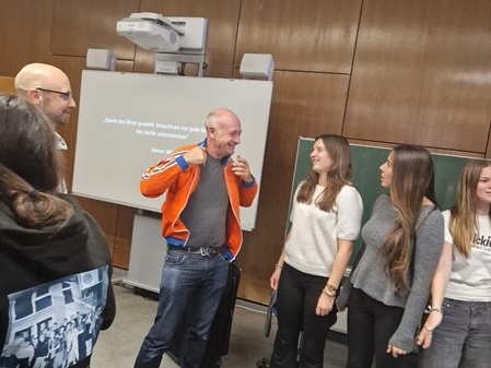 Für die Schülerinnen und Schüler war es eine wertvolle Erfahrung, mit jemandem zu sprechen, der nicht nur unterhaltsam von Geschichte erzählen kann, sondern auch authentisch für demokratische Werte eintritt – und dabei nie vergisst, dass Demokratie vor allem Eines bedeutet: einander zuzuhören. Herzlichen Dank an Alfons für diese tolle Begegnung!